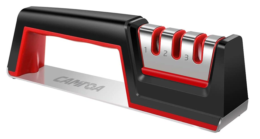 - Messerschärfer bestehend aus ABS-Kunststoff und 430 Edelstahl-Sockeln