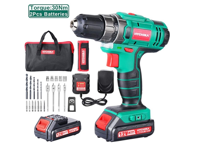 HYCHIKA 12V Akku Bohrschrauber mit 2x 1,5 Ah Akku und Zubehör-Set für 34,99 Euro