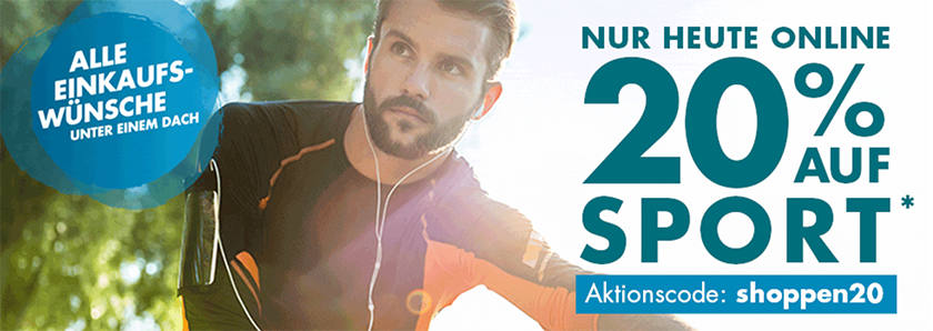 Um den Rabatt zu bekommen, müsst ihr den Gutscheincode shoppen20verwenden. Mit dabei sind einige Produkte aus den Bereichen Kleidung, Schuhe und Sportausrüstung.