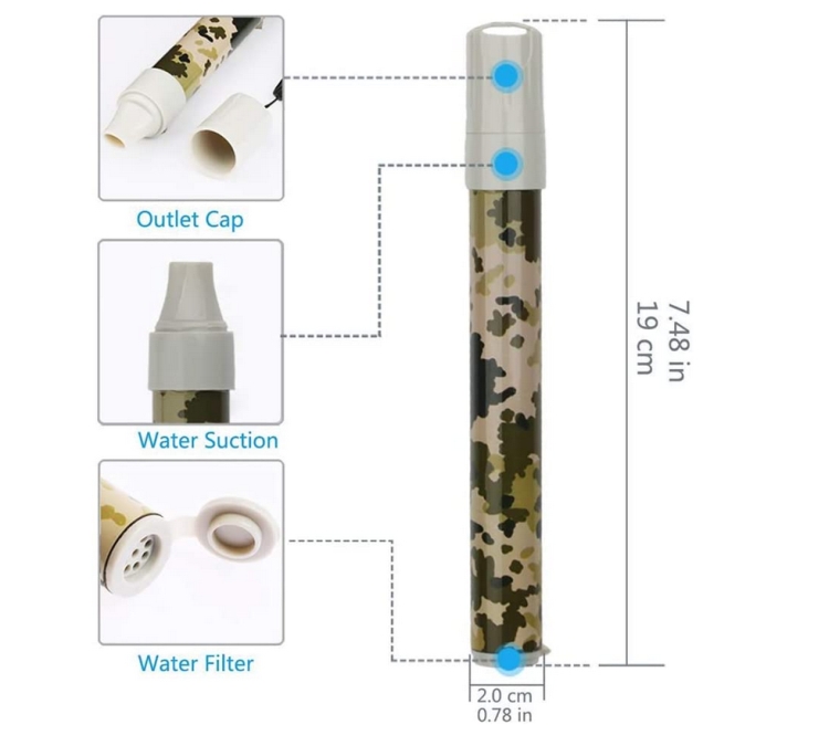 Es handelt sich um eine Art Trinkhalm-Filter, der Bakterien und Parasiten herausfiltern soll und Trübungen reduziert. Insgesamt soll der Filter für bis zu 600 Liter Wasser reichen.