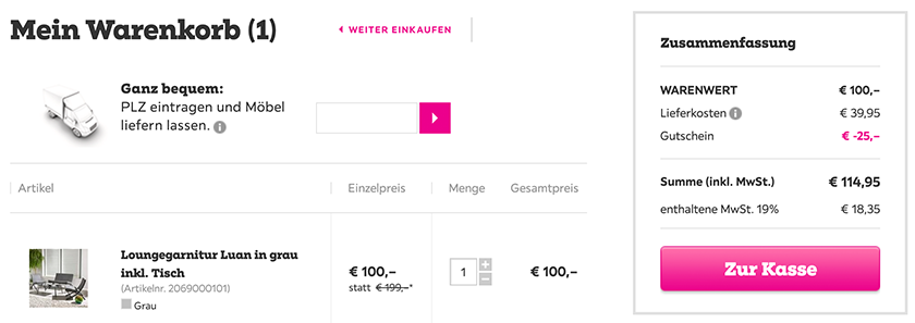Um auf den Preis zu kommen, nutzt ihr im Warenkorb einfach den Gutscheincode ZUHAUSE25