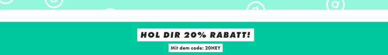 Um den Rabatt einzustreichen, müsst ihr im Warenkorb den Gutscheincode 20HEY eingeben. Mit dabei sind eine Vielzahl an Sneakern, Jeans T-Shirts und vielem mehr.