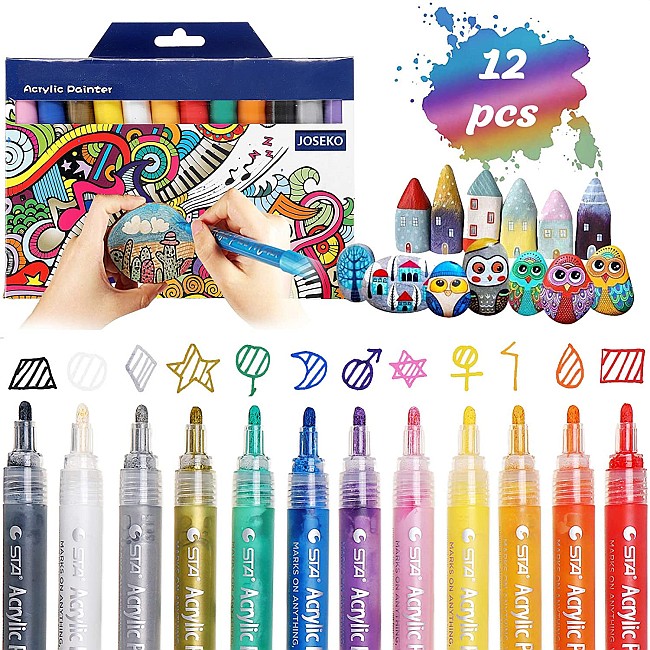 12er Set JOSEKO Acrylstifte (für Steine, Stoff, Holz, Glas, Metall, Porzellan, uvm.) für 9,59€