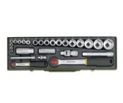 - Praxisorientierter Steckschlüsselsatz 1/2“ und 1/4 mit Standardratschen, Ohne unnötige Füllgrößen für professionelle Anwender