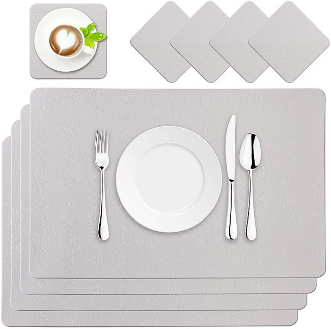 BaoWnylz Platzsets (Kunstleder, 45x30cm) + 4 quadratische Untersetzer für 5,40€