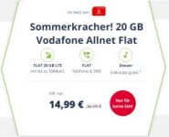 Sommerkracher: 20GB LTE Vodafone Aktionstarif mit 20GB Datenvolumen Allnet- und SMS Flat für 14,99 Euro + 4 Monate Deezer gratis!