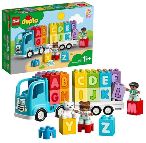 - Ein LKW mit 26 kinderfreundlichen Steinen, auf denen alle Buchstaben des Alphabets aufgemalt sind, die die Kinder beim Laden und Entladen lernen können