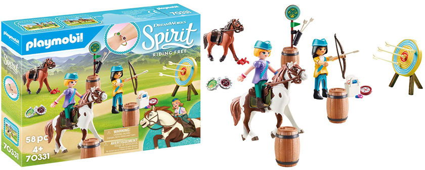 - Lieferumfang: 1 x PLAYMOBIL DreamWorks Spirit Abenteuer im Freien, 58-teiliges Spielfiguren-Set mit Anleitung: 1 Abigail, 1 Boomerang, 1 Ursula, 1 Bing Cherry, 54 Zubehörteile, Material: Kunststoff, 70331