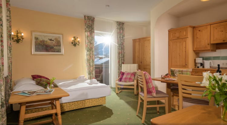 Das Appartementhaus liegt im Ortszentrum von Bad Hofgastein in der Fußgängerzone, direkt am Kurpark und bei der Alpentherme. Die Appartements sind mit jedem Komfort der 4 Sterne-Kategorie ausgestattet. Fast alle Appartements haben einen Wohnraum und ein separates Schlafzimmer und einen Südbalkon. Die Küchen sind mit zwei Cerankochfeldern, Kühlschrank, Kaffeemaschine und Wasserkocher, sowie Geschirr und Töpfen ausgestattet. Außerdem gibt es einen Aufzug im Haus.