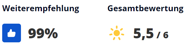 Bei HolidayCheck geben die Besucher 5,5 von 6 möglichen Sonnen.