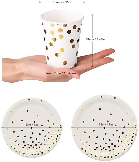 Ihr erhaltet jeweils 30 Becher, Dessertteller und 30 Essteller. Genug für eine große Feier!