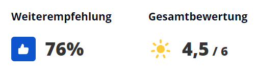 Bei HolidayCheck geben die Besucher 4,5 von 6 möglichen Sonnen.