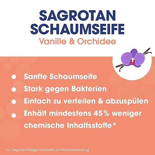 Sanft zur Haut und stark gegen Bakterien: Bei Amazon gibt es heute 4x die Sagrotan Vanille & Orchidee antibakterielle Schaumseife für nur 5,15€ inkl. Versand.