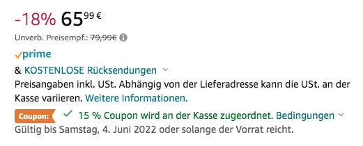 Auf den Preis kommt ihr durch den 15% Click-Coupon, der sich auf der Produktseite aktivieren lässt.