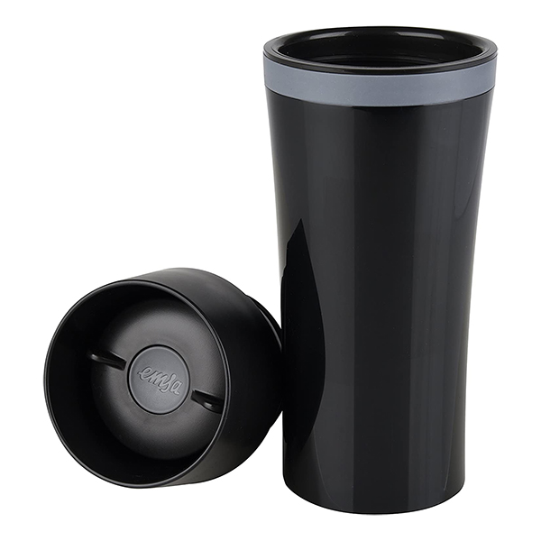 - Lieferumfang: 1 Emsa Isolierbecher Travel Mug Fun Schwarz/Anthrazit, Volumen: 360 ml, Material: ABS, PP