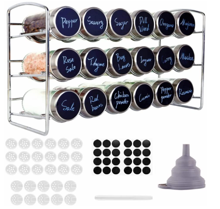 - Das Set beinhaltet ein Gewürzregal aus Metall, 18 Gewürzstreuer, 24 Etiketten, 10 Multifunktions-Gewürzsiebe, einen Silikontrichter und einen löschbaren Stift