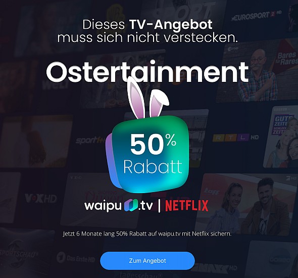 Letzter Tag! Ostertainment bei waipu.tv – 50% Rabatt – ab 3€