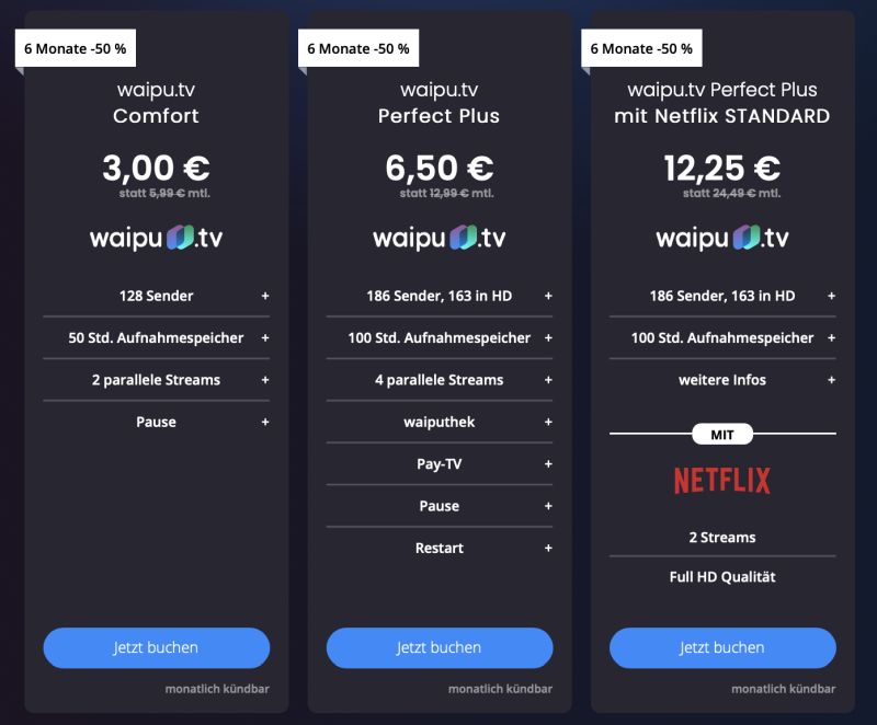 Die Aktion endet heute endgültig: Zu Ostern bieten die Jungs und Mädels von Waipu richtig starke 50 % Rabatt für 6 Monate auf alle Comfort, Perfect Plus und Perfect Plus mit Netflix-Pakete!