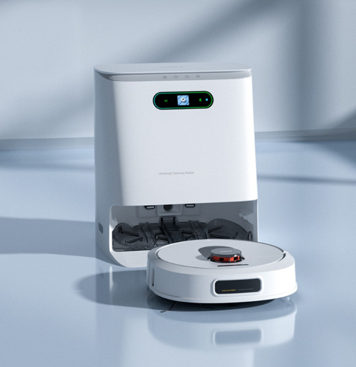Der Saugroboter kann saugen und wischen und steuert selbständig die Reinigungsstation an.