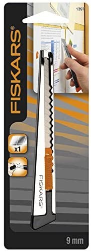 - Lieferumfang: 1x Fiskars Profi-Cuttermesser flach, 9 mm, Maße: 0,7 x 13,9 x 2,2 cm, Gewicht: 19 g, Farbe: Orange/Silber, 1004619