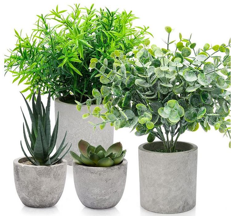 - Im Paket enthalten 4 verschiedene Kunstpflanzen im Topf: Eukalyptus, Rosmarin und Sukkulenten. Lebensechte Deko-Pflanzen brauchen keine tägliche Pflege