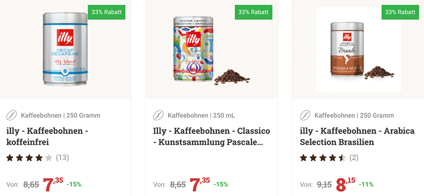 Bei cafori.com (ehemals Kaffeevorteil) bekommt ihr gerade satte 33% Rabatt auf verschieden illy Kaffeebohnen!
