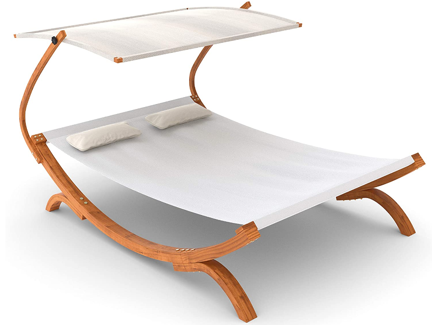 Doppel-Sonnenliege Panama mit Dach in Creme weiß mit Holzgestell und Kissen für nur 199€ inkl. Versand