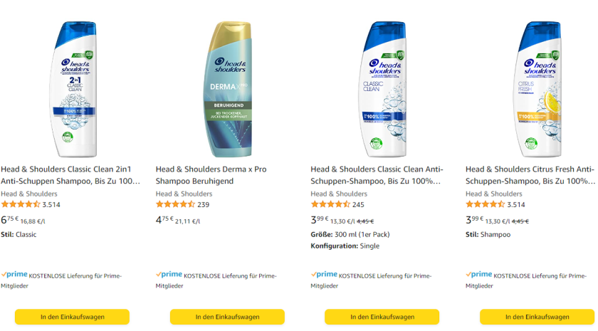 Bei Amazon gibt es gerade 3 Flaschen Head & Shoulders zum Preis von 2.