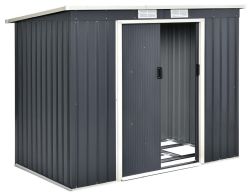 - Robustes Gerätehaus M mit Pultdach in Anthrazit aus feuerverzinktem Stahlblech; trotzt Witterung, UV-Strahlung & Verschmutzungen; Langlebig, stabil, widerstandsfähig & wasserdicht
