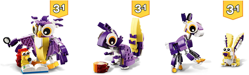 - LEGO Creator 3-in-1 Wald-Fabelwesen bietet 3 Tierszenen in einem Set mit 5 Spielzeug-Tieren zum Gestalten