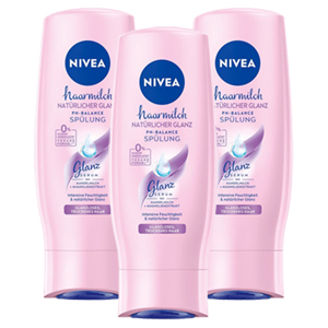 Bei Amazon gibt es aktuell im Zuge der NIVEA 3-für-2 Aktion 3x 200 ml NIVEA Haarmilch Natürlicher Glanz Spülung für nur 4,44€ inkl. Prime-Versand.