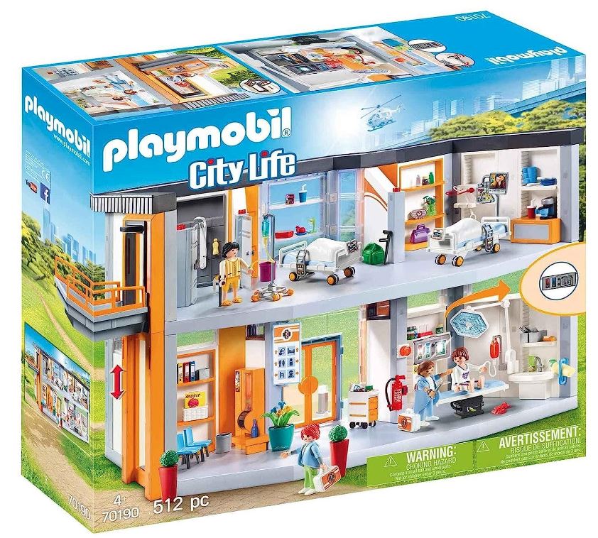 - Lieferumfang: 1x PLAYMOBIL City Life Großes Krankenhaus mit Einrichtung, 512-teiliges Spielfiguren-Set mit Anleitung: 1 Krankenhausgebäude, 4 Figuren, 507 Zubehörteile (exkl. 1x 1,5 V Microbatterie), Material: BPA-freier Kunststoff, LxTxH: 70x31x34 cm, 70190