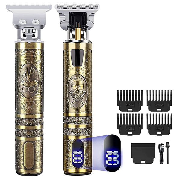 - uper cooler Retro-Stil mit rundem Griffdesign. T-Präzisionsklinge aus rostfreiem Stahl, scharf und langlebig. Der Haarschneidemaschine wird mit 4 Führungskämmen (1,5/2/3/4 mm) zum Glätten von Haaren, Ritzen und Rasieren, Retro-Styling, sogar zum Rasieren des Kopfes geliefert.Die Trimmer Ihnen beim Erstellen einer Vielzahl von Frisuren