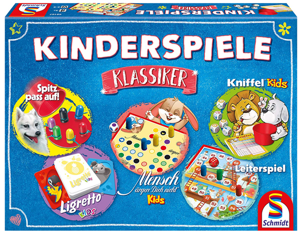- Hier hat sich viel versammelt, was bei Kleinen und großen Spielefans Rang und Namen hat: Das Set beinhaltet fünf Der bekanntesten und beliebtesten Kinderspiele