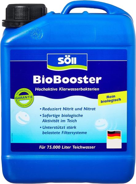 - Biologische Teichreinigung: Söll BioBooster mit natürlichen Teichbakterien (2,5 l für 75.000 Liter).