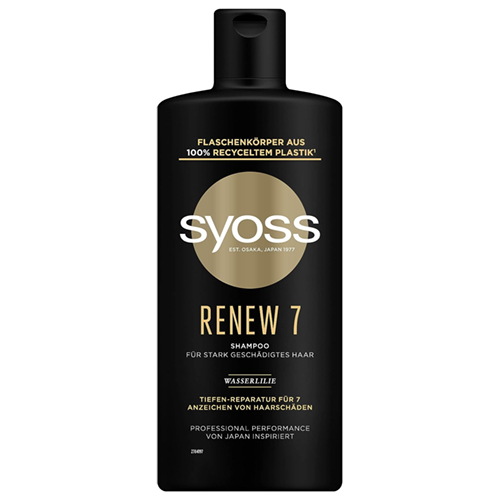 - Renew 7 Shampoo – Das Syoss Renew 7 Shampoo eignet sich für vielfach geschädigtes Haar und hilft bei 7 Arten von Haarschäden