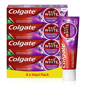 Bei Amazon bekommt ihr zur Zeit die Colgate Max White Purple Reveal Zahnpasta im 4er-Pack für nur 8,81€ inkl. Prime-Versand.