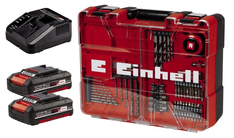 - Power X-Change – Der Akku-Schlagbohrschrauber TE-CD 18/2 Li-i +64 (2×2,0 Ah) ist Teil der Einhell Power X-Change Familie, in der Akkus, Ladegeräte und Systemgeräte kombiniert werden können