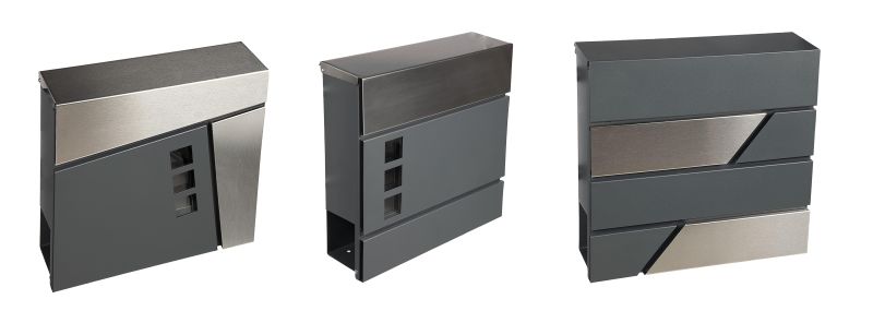 • Einwurfklappe mit Geräuschdämmung – 3 Sichtfenster – MATERIAL: Galvanisierter Stahl, anthrazit pulverbeschichtet mit Klappe aus Edelstahl
