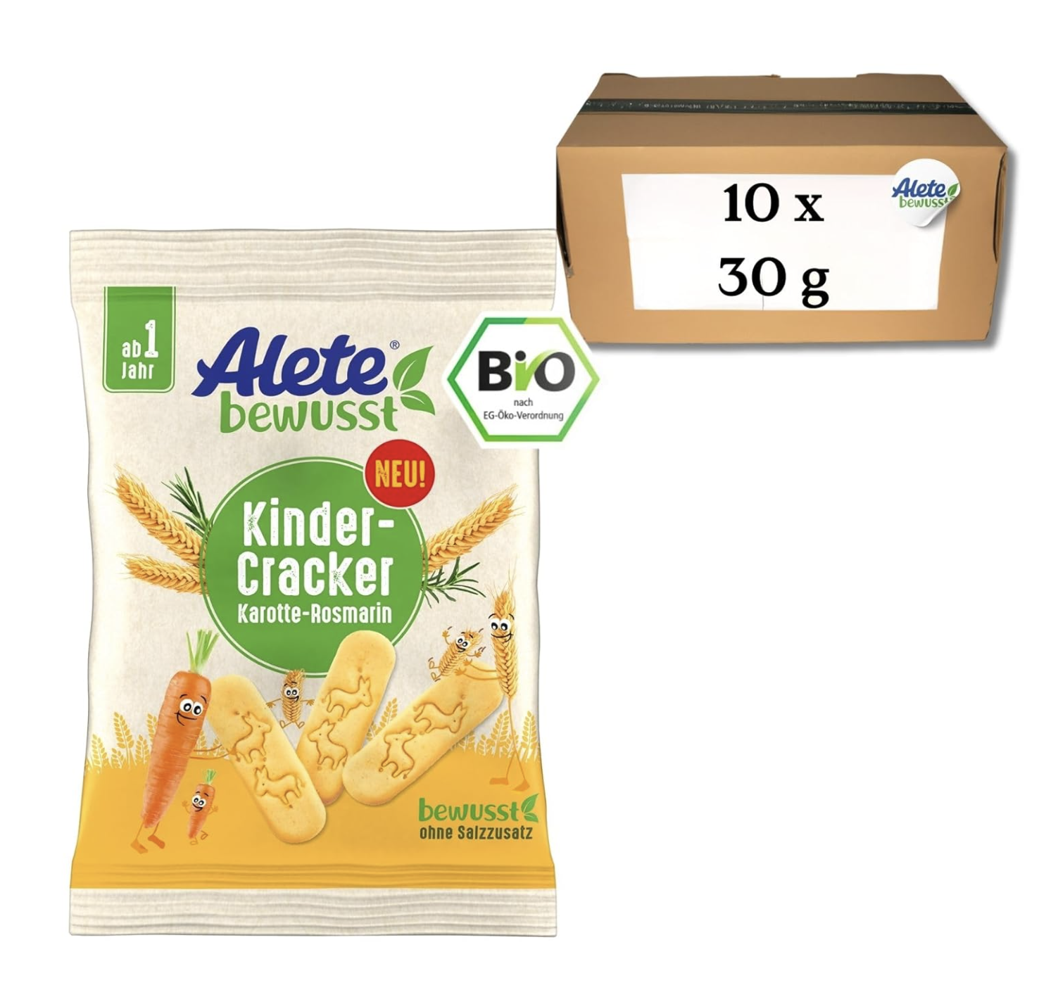 Alete bewusst Bio Kinder-Cracker mit Karotten- und Rosmarinpulver (10 x 30 g) für nur 5,85€ bei Prime-Versand im Sparabo
