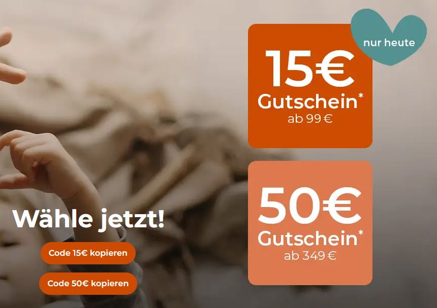 Leider sind einige Produkte von der Aktion ausgeschlossen, darunter zählen „Kategorie ‚Milchnahrung‘ sowie Geschenkgutscheine, Bücher und Artikel folgender Marken sind von der Aktion ausgeschlossen: ABC Design, Bugaboo, Easywalker, HTS BeSafe, Joie Signature, Joolz, Limas, Nuna, Stapelstein, Stokke Nomi, Stokke TrippTrapp, tonies, Britax Römer Diamond, GB Platinum, cybex Gold, cybex Platinum, QueChaLe, Quinny Premium Line, Maxi Cosi Premium Line.