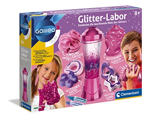 Mit dem Clementoni Galileo Fun Glitter-Labor können Kinder ab 8 Jahren spannende Experimente mit Glitzer, Slime und mehr durchführen.
