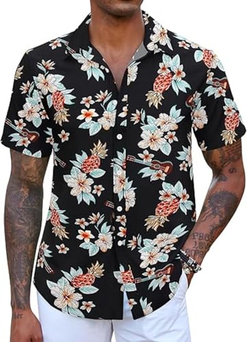 COOFANDY Herren Hawaiihemd Schwarz L für 8,99€