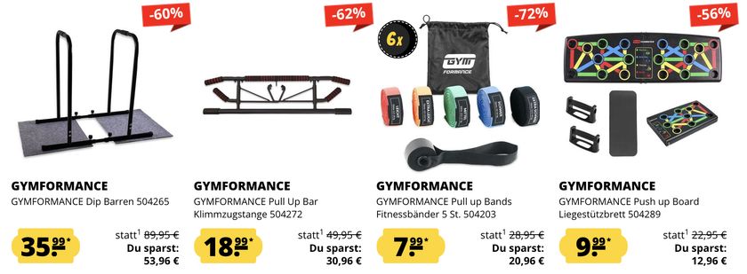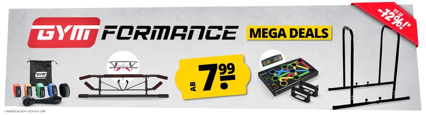 Bei SportSpar gibt es aktuell GymFormance Mega Deals mit bis zu 72% Rabatt.