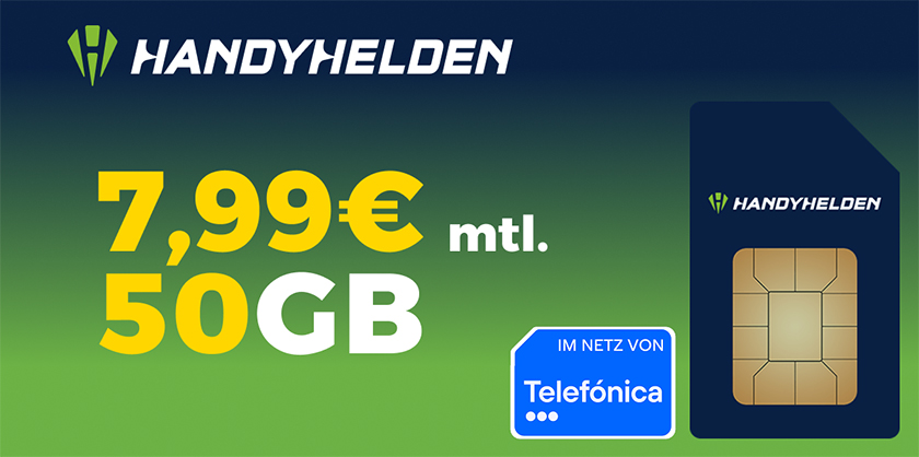 Handyhelden Telefónica Allnet Flat mit 50 GB für mtl. 7,99€ – monatlich kündbar!