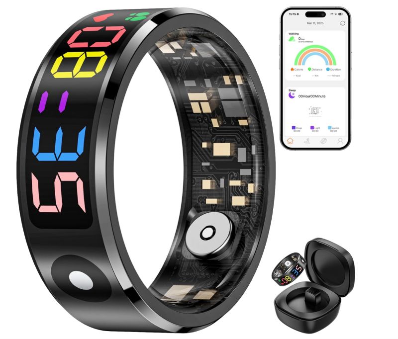 - Smart Ring mit HD-LED-Touchdisplay für Uhrzeit, Schritte und Akkustand