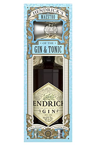 - Dieses Hendrick’s Gin-Geschenkset enthält eine Flasche Hendrick’s Gin und ein Barmaß.