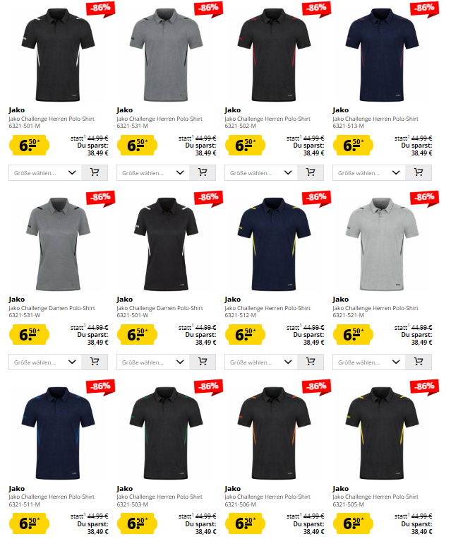 Jako Challenge Polo Shirts für Damen und Herren für nur 11,45€