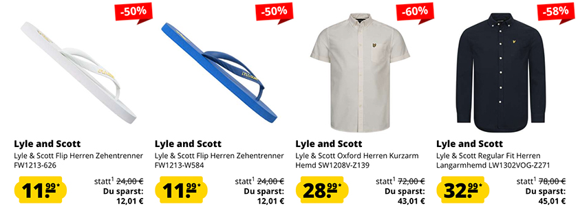 Heute bekommt ihr bei SportSpar etliche Sneaker, Hemden, Polo-Shirts, Jacken und viel mehr von Lyle & Scott zu echt guten Preisen.