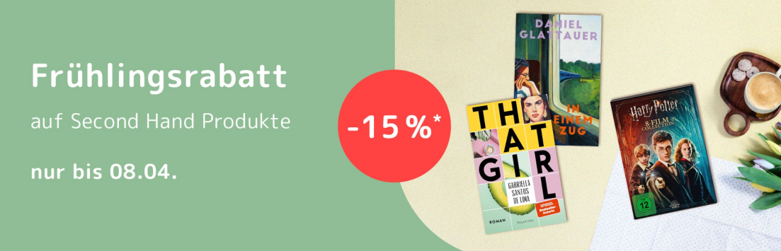 Bis einschließlich Dienstag (08.04.2025) bekommt ihr bei Medimops sehr gute 15% Rabatt auf alle Second Hand Produkte.